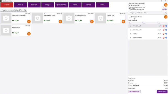 Se o pedido for para entrega, quando a opção Retirar Pedido for desmarcada, abrirá a tela de endereço para que o mesmo seja confirmado