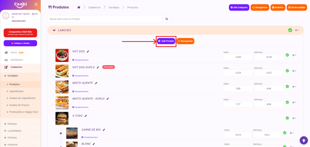 Neste artigo você vai aprender a cadastrar e editar produtos em seu cardápio no Portal Cooki. É recomendado que, antes de cadastrar os seus produtos, você já tenha feito o cadastro de suas categorias.