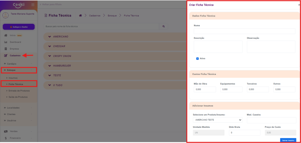 Vamos aprender como cadastrar uma ficha técnica? 😊
