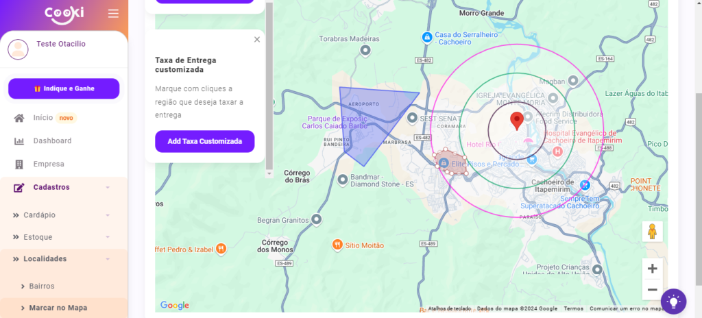 A configuração de taxa por polígono permite definir valores de entrega para áreas específicas no mapa, dando maior controle sobre as regiões atendidas. Siga este passo a passo para ajustar as taxas e áreas de entrega conforme sua estratégia: