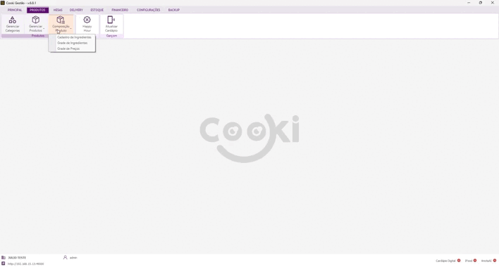 1º No menu Composição de Produtos, clique em Grade de Ingrediente e depois em Novo;