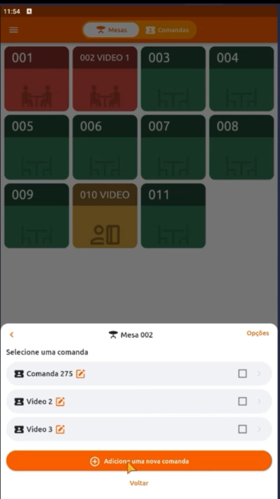 4º Escolha a comanda correspondente (ex.: “Comanda 2”);