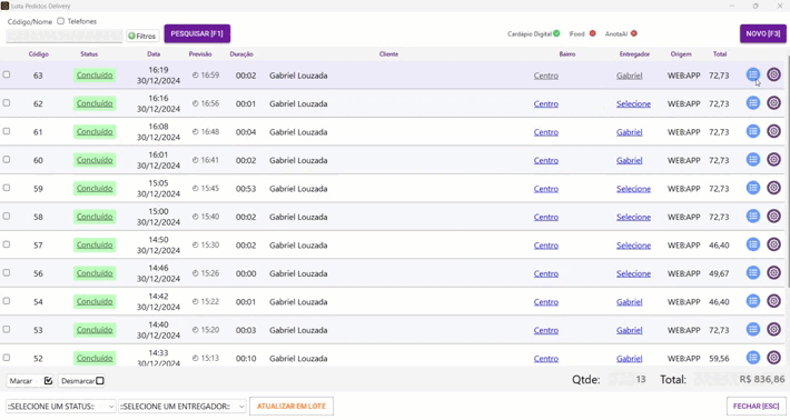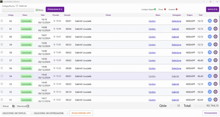 - Apenas atualize o status de forma linear até a conclusão do pedido.