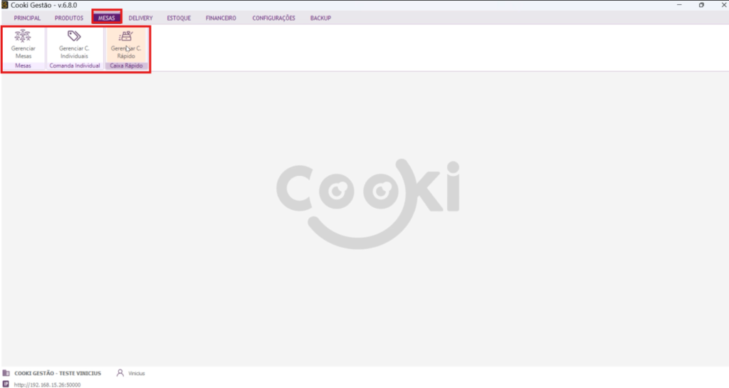 7º Guia de Mesas: Você encontra ferramentas para acompanhar e controlar todas as mesas ativas de forma eficiente. Você pode acessar e administrar comandas específicas, garantindo que cada pedido seja tratado com precisão. Além disso, o Gerenciar Caixa Rápido permite realizar vendas rápidas e simplificadas no balcão, otimizando o fluxo de atendimento e melhorando a experiência do cliente.